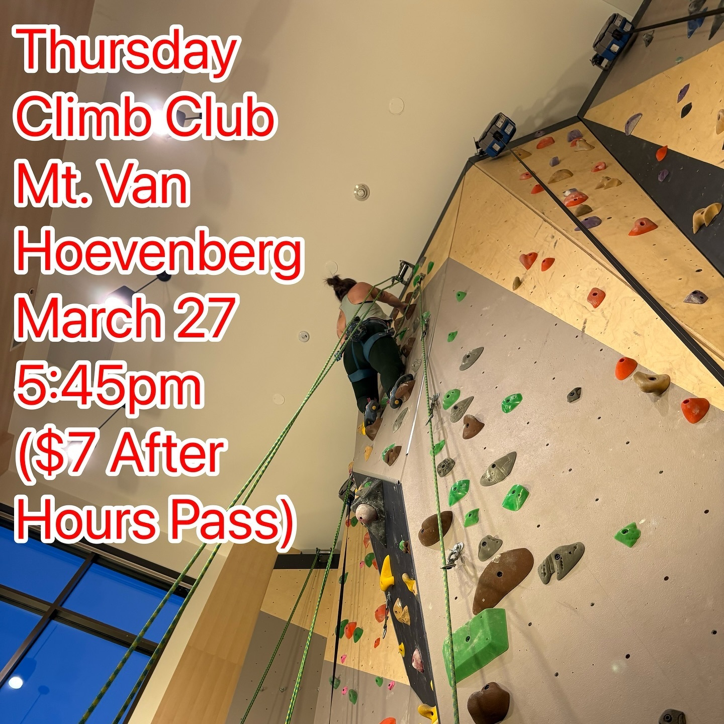 Hopefully warm weather will return soon to get us outside, but weâll climb at the @vanhoevenberg gym this week! Bring your climbing gear (or borrow some from @onwardguides), $7 for the after-hours pass, a friend, and beverage for afterward. See you there!