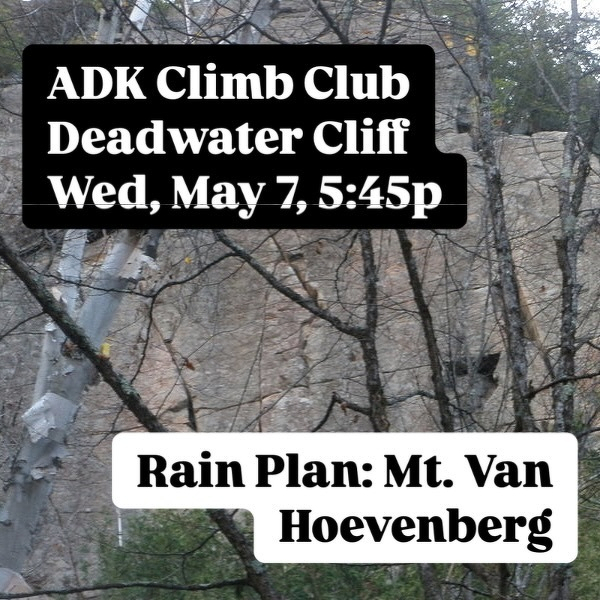 Wednesday May 7thâs Climb Club meetup will be at Deadwater Cliff! But if we get rained out (and letâs be real, the forecast is looking pretty wet) weâll head to @vanhoevenberg instead. So bring your $7 for the after-hours pass just in case!