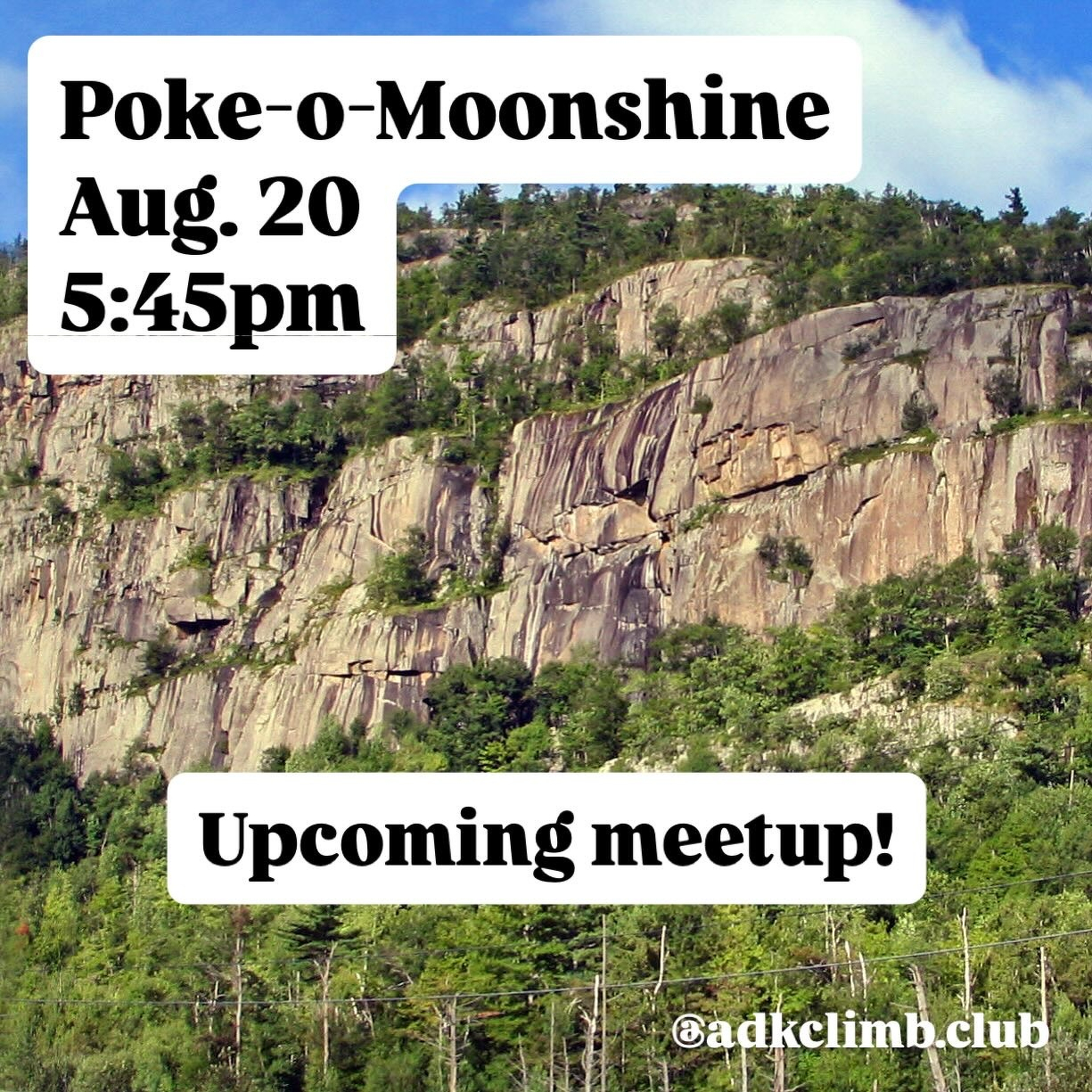 See you on Wednesday for our weekly meetup, this time at Poke-o-Moonshine! Weâll in the main lot by the Ranger Trail at 5:45pm.