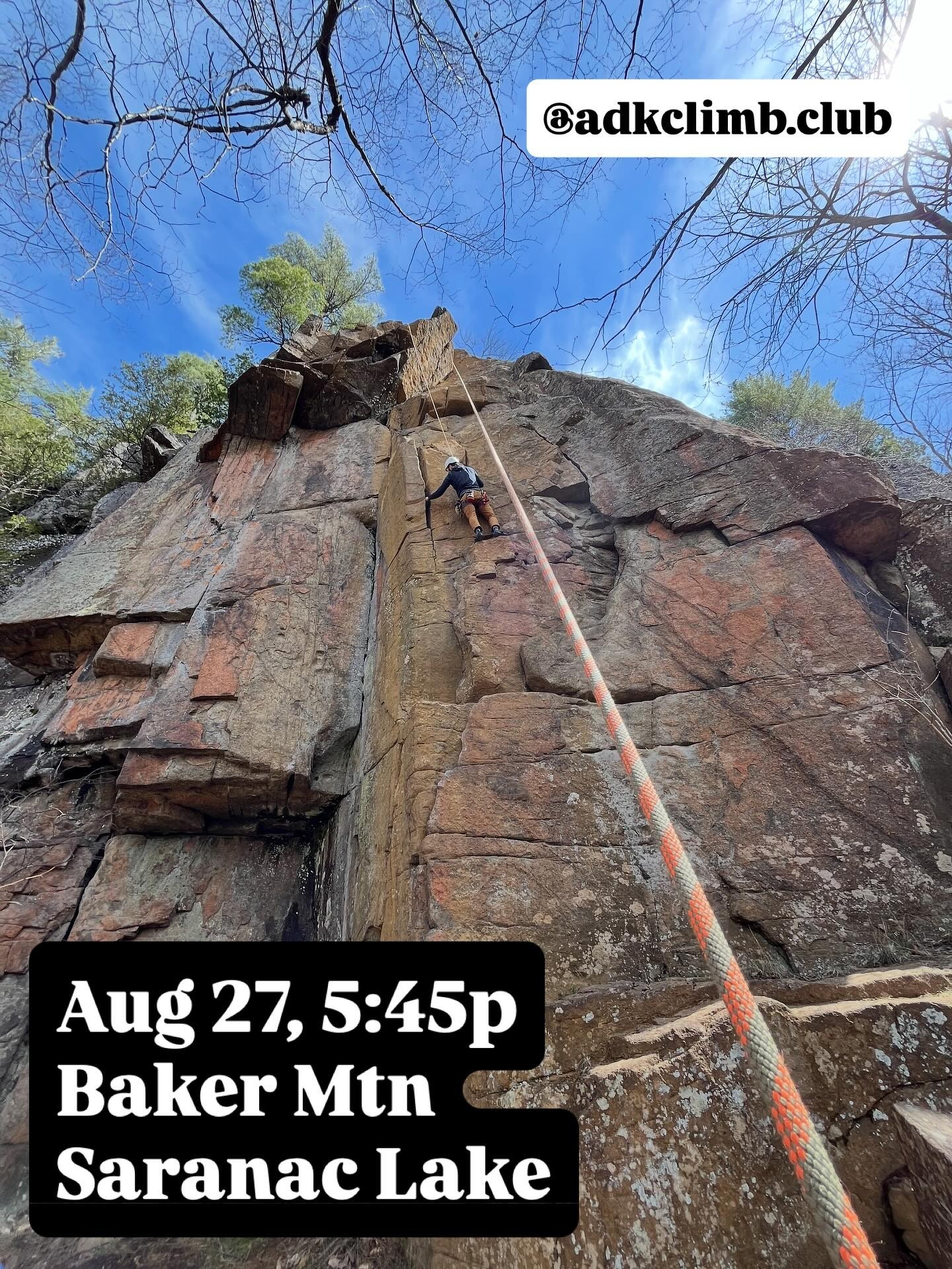 See you for tomorrowâs meetup at Baker Mountain crag in Saranac Lake. Weâll meet up at 5:45p along the road next to Moody Pond (be mindful of parking!) and then do the 15 min hike up to the crag. Approach description is on Mountain Project (link in bio). Donât forget your headlamps!